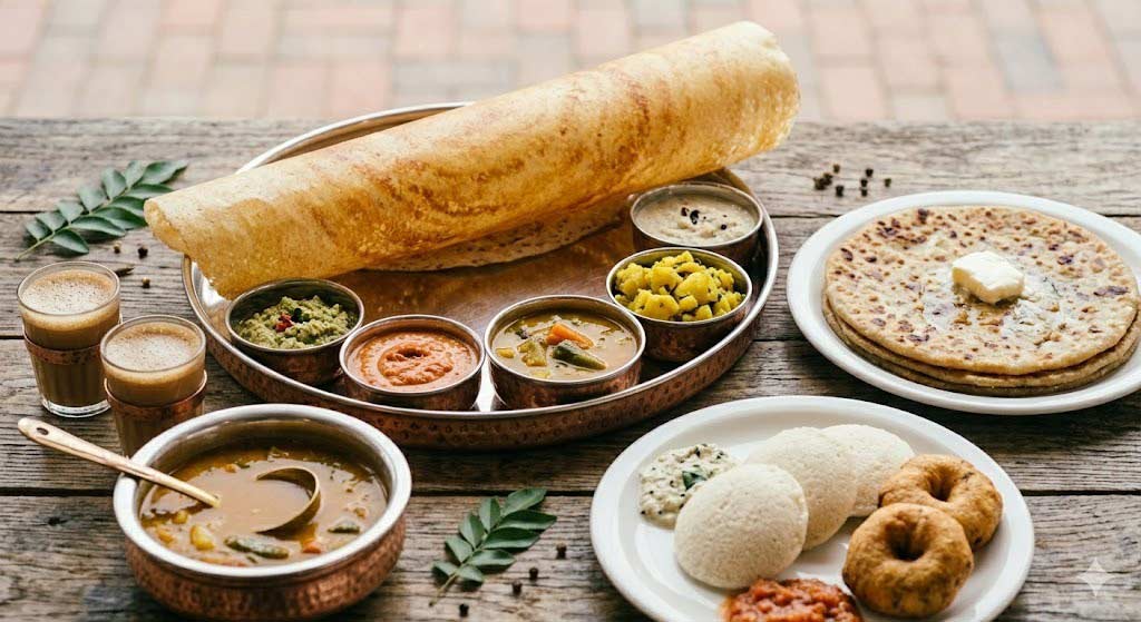 - Real South Indian flavors , like fluffy idlis and crispy dosas with the best chutneys and sambar.